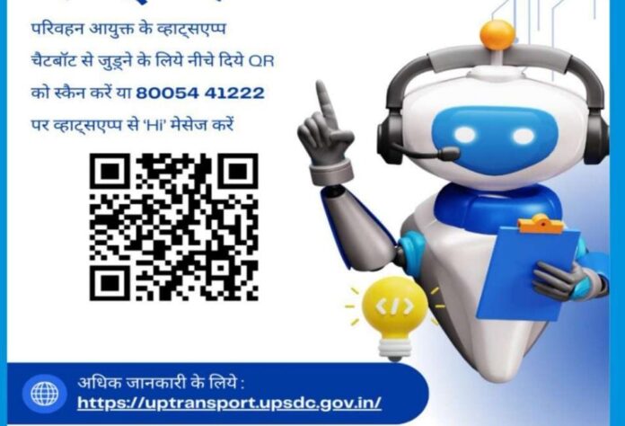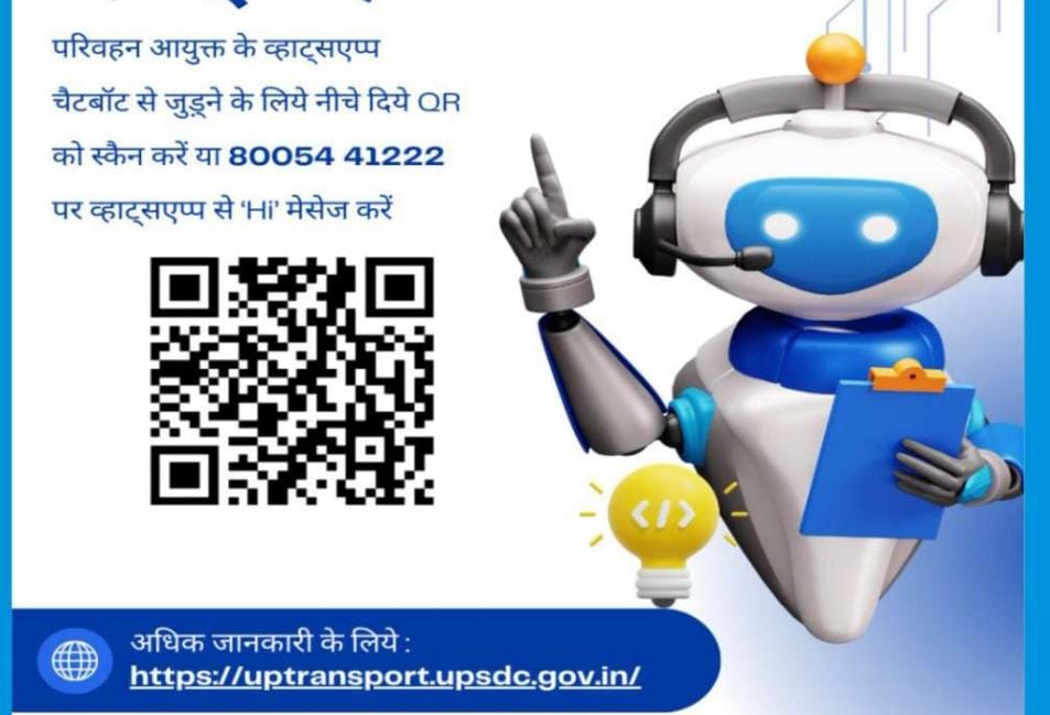 लखनऊ : मुख्यमंत्री के कुशल मार्गदर्शन में प्रदेश के आम नागरिकों की सुविधा को सर्वोच्च प्राथमिकता देते हुए, परिवहन विभाग ने एक महत्वपूर्ण डिजिटल पहल की है। विभाग ने व्हाट्सएप आधारित चैटबॉट सेवा (मोबाइल नंबर: 8005441222) के माध्यम से अब लोग घर बैठे ही परिवहन संबंधी अनेक सेवाओं एवं सूचनाओं का लाभ सहजता और पारदर्शिता के साथ प्राप्त कर सकते हैं।